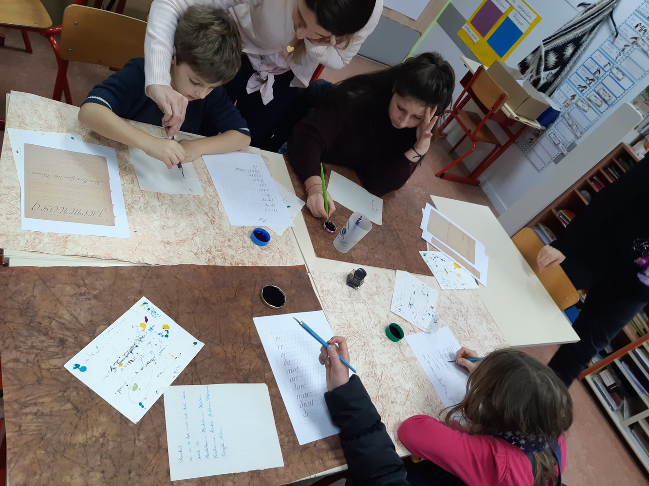 A l'école durant toute une semaine les enfants ont vécu à la mode d'autrefois au travers de dictées, écriture à la plume et jeux anciens !